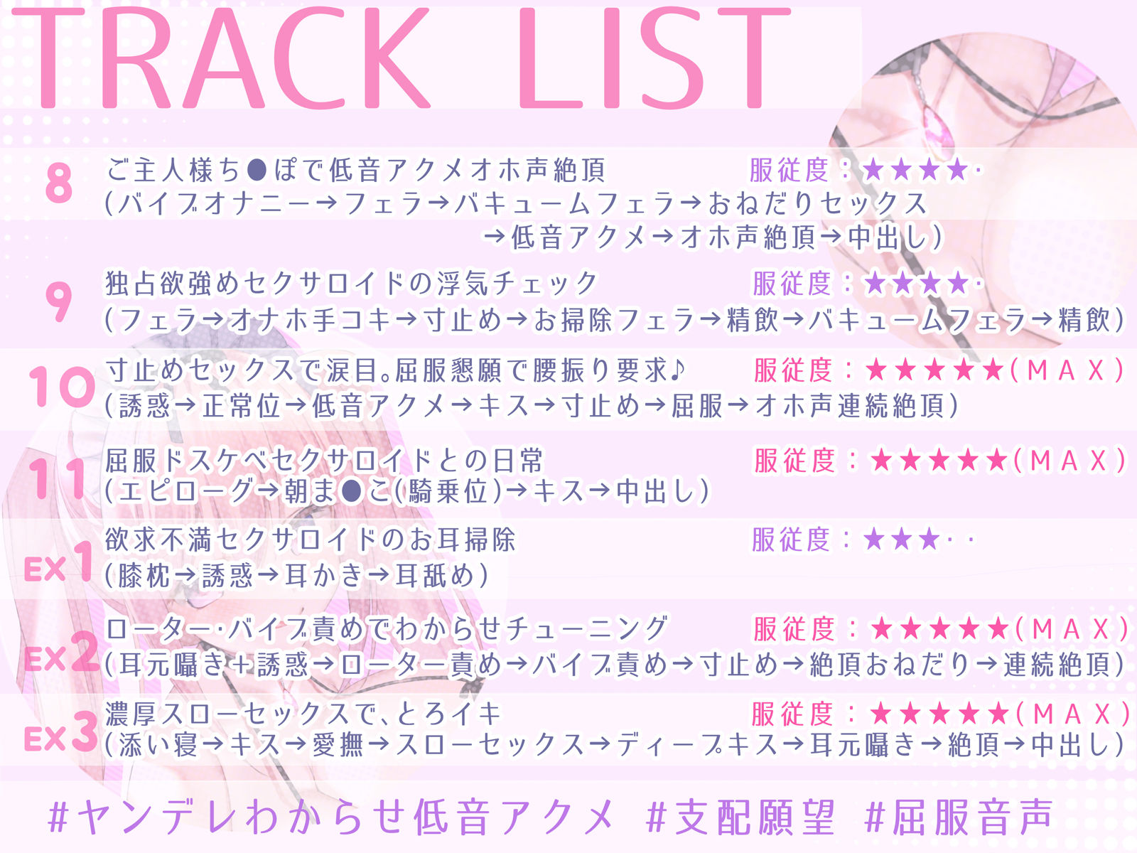 ジャンル: ラブラブ・あまあま、退廃・背徳・インモラル、人外娘・モンスター娘、色仕掛け、男性向け、成人向け、バイノーラル、淫乱、淫語、主従